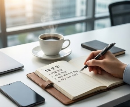 월요일 아침, 쏟아지는 업무 메일과 깐깐하게 확인해야 할 현장 품질 점검 리스트들을 보면 숨이 턱 막힙니다. 출근하자마자 숨 돌릴 틈도 없이 바로 모니터를 켜거나 현장으로 달려가지 마세요. 자리에 앉아 딱 15분 동안은 온전히 따뜻한 커피나 차를 마시며 오늘 해야 할 일을 수첩에 ‘손글씨’로 천천히 적어보세요.