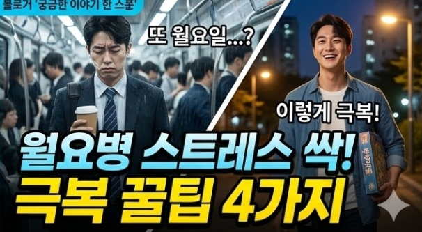 직장인에게 월요일이 고된 것은 너무나 당연한 일입니다. 자책할 필요 전혀 없습니다. 하지만 그 피곤한 하루를 어떻게 마무리하고 내 마음을 다독이느냐에 따라 남은 화요일부터 금요일까지의 컨디션이 180도 달라집니다. 오늘 **’궁금한 이야기 한 스푼’**에서 알려드린 현실적인 방법들 중, 오늘 저녁 당장 실천할 수 있는 딱 한 가지만 꼭 시도해 보시길 바랍니다.