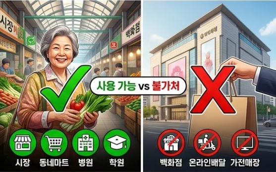 - 지역 상점가 및 지하상가: 옷, 신발, 잡화 등을 구매할 수 있는 지정 상점가에서 자유롭게 결제 가능합니다.